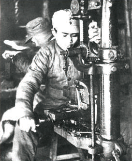 “炮彈大王”甄榮典,是八路軍黃崖洞兵工廠的一名水車動(dòng)力車工,從事炮彈生產(chǎn)最吃力的工種,別的工人都因體力消耗支撐不住,不到兩三個(gè)月就需要輪換一次,但甄榮典深知前線的需要,堅(jiān)持在水力輪帶旁一干就是5年。別人一天車五六十發(fā)炮彈,他能車100發(fā)以上;別人車到100發(fā),他又增加到150發(fā),最終創(chuàng)造了日車炮彈外圓480發(fā)的驚人紀(jì)錄。